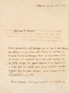 SCRIBE Eugne (1791-1861). Auteur dramatique, membre de l'Académie Franaise. L.A.S. Eugne Scribe adressée au Vicomte de Beauchesne datée du 26 octobre 1827, Billancourt, 2 pages, in-4°, o il le remercie d'avoir attiré le regard du roi sur...