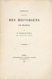 agrémenté d'un portrait gravé hors-texte de Louis XVII, importantes traces d'humidité et pliures; THIBAULT A. T. Essais de poésies, Paris, Imprimerie de Plassan, 1825. In-4°, broché, 79 pp., agrémenté d'une L.A.S. A. T. Thibault adressée au vicomte de Beauchesne concernant cet ouvrage, 3 pages, in-4°, importants manques et traces d'humidité; DU FRESNE DE BEAUCOURT G. Le meurtre de Montereau, Paris, librairie de Victor Palmé, 1868. In-4°, broché, 51 pp., agrémenté d'une dédicace autographe de l'auteur au vicomte de Beauchesne, importantes traces d'humidité et pliures; GRIMAUD Emile. Le balafré, à la mémoire du Général Comte Auguste de la Rochejaquelein, Nantes, 1868. In-4°, broché, 7 pp., agrémenté en ouverture d'une carte de visite contrecollée d'Emile Grimaud ainsi qu'une dédicace autographe de l'auteur au vicomte de Beauchesne datée du 10 décembre 1868, Nantes, traces d'humidité et pliures; WAILLYS Natalis de. Préface du XXe volume des Historiens de France, Paris, typographe Ad R. Lainé et J. Havard, 1865. In-4°, broché, 27 pp., agrémenté d'une dédicace autographe adressée au vicomte de Beauchesne par l'auteur en premire de couverture, traces d'humidité mais bon état.