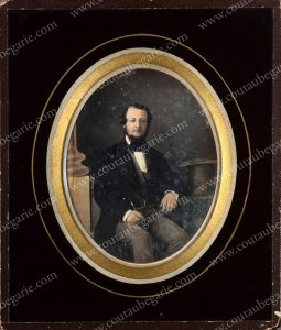 DAGUERREOTYPE. Portrait du vicomte Alcide de Beauchesne (1804-1873). Porte l'inscription manuscrite:portrait fait par Daguerre en 1851. H.: 15 cm L.: 13 cm.