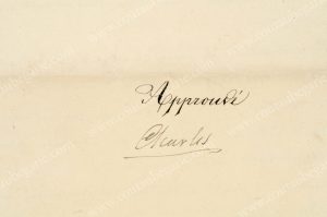 [CHARLES X, roi de France] BEAUCHESNE Alcide, Vicomte de (1804-1873). Lettre nobiliaire manuscrite signée Charles, et contresignée par le duc de Doudeauville, Château de Tuileries, 28 mars 1827, 3 pages _, à en-tte imprimé de la Maison du Roi-...