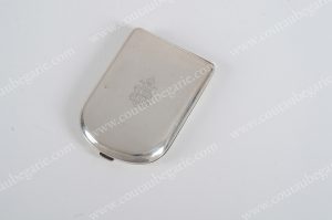 se fait sur la partie avant par bouton poussoir en argent. Porte une dédicace datée 1907. Usures du temps, mais bon état. Vienne, A.S., circa 1905,1907. H. : 9, 5 cm L. : 6, 5 cm - E. : 1, 5 cm. Poids. : 82 grs.