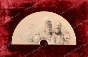 15 avril 1891 au palais de Nymphemburg (Munich), orné du blason aux couleurs de la Bavière surmonté de la couronne royale, appliqué sur un fond en velours rouge. Petites taches, mais bon état général. Travail allemand de la fin du XIXe sicle. H. : 36, 5 cm - L. : 56 cm.