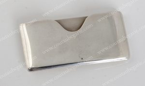 PORTE-CARTES DE VISITE. En argent, gravé No‘l 1903. On y joint une palette de peinture portative en argent, intérieur vermeil. Usures du temps, mais bon état. Poinon titre : 800. H : 4, 5 cm L. : 8, 5 cm.Poids : 30 grs.