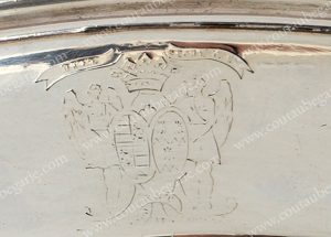 ASSIETTE CREUSE. En argent, gravée sur le haut du marli d'un blason d'alliance sous couronne comtale. Travail Franais, du maitre orfvre Pierre Vallire, poinon au premier coq, Paris, 1798-1809. H : 3 cm Diam. : 27, 5 cm.Poids : 642 grs.