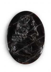 O'BRISSET John (1705-1728). Le roi Charles Ier d'Angleterre (1600 1649). Médaillon de forme ovale en écaille de tortue, représentant son profil en buste la tte tournée vers la droite, signée des initiales de l'artiste O.B. en bas à gauche....