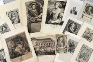 l'empereur Pierre Le Grand, le duc d'Orléans, la princesse Louise de Danemark, Charles duc d'Orléans; Henri de Lorraine, duc de Guise, la princesse de Lamballe, le roi Guillaume II, mademoiselle de Fontanges, Louis Labbé, la reine Marie de Médicis, le roi Henri VIII, Léonard de Vinci mourant dans les bras de François Ier, S.A.R le comte d'Artois sortant de la cour des aides de Paris, le 17 aoét 1787, etcÉ Datant du XVIIIe et XIXe sicle. Formats divers.