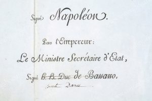 NAPOLEON, empereur des Franais (1769-1821). Décret impérial signé Comte Daru [Pierre (1767-1829)], Montalivet [Comte Jean-Pierre de (1766-1823)], Charles-Maurice [prince de Talleyrand (1754-1838)], établi au Palais des Tuileries, le 10 janvier...