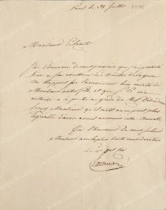 EXELMANS, Remy-Joseph comte de (1775-1852). L.A.S. Exelmans adressée au pre du Marquis de Puységur, Paris, 31 juillet 1814, in-4, bon état.