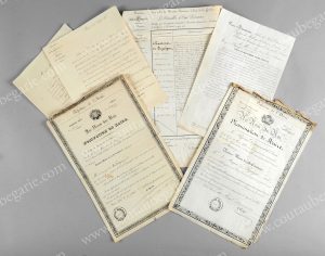 retirer sa candidature à la députation de l'Aine avec le brouillon de la réponse ; L.A.S. du Maire d'Hartennes, datée du 22 mars 1835, lui annonant sa nomination de chef de bataillon de la garde nationale; la nomination du Maire de Bouzance, datée du 10 aout 1840; la nomination du Maire de Bouzance, datée du 27 juillet 1843. Formats divers. En l'état.