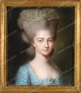 *ECOLE FRANCAISE DU XVIIIe SIECLE. Attribué à Quentin de La Tour (1704-1788). Portrait de la princesse Marie-Thérse de Lamballe, née princesse de Savoie-Carignan (1749-1792). Pastel, conservé dans un cadre ancien en bois doré. Légres...