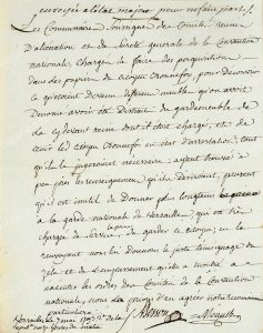 MEAULLE Jean-Nicolas (1757-1826). Membre de la Convention. L.A.S. Méaulle et contresignée par Besson, adressée à l'Etat-major, Versailles, 7 mai 1793, 1 page, in-4°, pliures, bon état général.