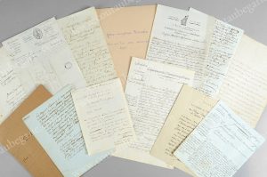 établissement militaire qui intéresse le département, 1 page, in-4°, bon état; 1 L.S. Rovre Boucher, Sauveur et Guffroy adressée à la commission des hospices militaires de la république par laquelle ils demandent que le citoyen Delemer soit employé au sein d'un hospice militaire, 1 page, in-folio, pliures et traces d'humidité; 1 L.A.S. et 2 P.S. Fourcroy sur papier à en-tte en partie imprimé du ministre de l'intérieur, adressées à divers destinataires, et datées des 3 Frimaire de l'an XI, 17 mars 1807, et 27 mars 1807 et dans lesquelles il répond favorablement à une demande de cours particuliers, puis dans les 2 P.S. o il prend différents arrtés relatifs à l'enseignement au conservatoire impérial de musique, documents de respectivement 2 pages, in-4°, 3 pages, in-folio et 1 page _, in-4°, le tout comportant des pliures et déchirures mais en bon état dans l'ensemble; 1 P.S. Garnier qui lui est adressée par Mme Chappe, datée du 24 Germinal de l'an II, Brélon, dans laquelle il lui est demandé de libérer le fils Chappe détenu sans en connAître les motifs, 2 pages, in-folio, mouillures et déchirures; 2 L.A.S Monestier adressées à divers destinataires et datées de l'an I et II dans lesquelles il traite de différents sujets, 2 pages chacune, in-4°, traces d'humidité et déchirures. On y joint 5 lettres autographes qui lui sont adressées ainsi qu'une copie de 7 pages d'une lettre adressée à son pre; 1 L.A.S. Pfieger adressée au comité de la guerre de la Convention Nationale, datée du 4 Brumaire de l'an II, Chalon, par laquelle il demande des renforts militaires pour son département de Saône-et-Loire, 2 pages, in-folio, pliures mais bon état; 1 L.A.S. Gouttes datée du 23 décembre 1790, dans laquelle il demande à son interlocuteur de payer les sieurs Le Tailleur et George pour les travaux qu'ils ont réalisés aux carrires, 2 pages, in-folio, traces d'humidité mais bon état; 1 L.A.S. Delbrel qui lui est adressée et dans laquelle il répond qu'il transmettra la demande qui lui a été faite à la Convention Nationale, 1 page, in-4°, déchirures et traces d'humidité. On y joint une copie manuscrite d'une lettre qu'il a adressée au Comité de Salut Publicà la suite d'une bataille gagnée par le général Augereau; 1 L.A.S. Villar sur papier à en-tte en partie imprimé de l'Institut National des Sciences et des Arts et datée du 4 Vendémiaire de l'an XI, Paris, par laquelle il accuse réception et lecture d'un mémoire sur la direction des aérostats, 1 page, in-4°, déchirures et traces d'humidité mais bon état; 1 L.S. Turreau adressée au directeur des postes de l'armée et datée du 18 Frimaire (?), Saumur, dans laquelle il lui demande de faire passer sur le champ la dépche qu'il lui a envoyée, 1 page, in-8¡, traces d'humidité mais bon état; 1 L.A.S Mathieu adressée au citoyen Ramel, ministre des finances, et datée du 1er Floréal de l'an IV, Paris, dans laquelle il demande la réouverture de l'établissement d'instruction publique de la ville de Compigne, 3 pages, in-4°, bon état; 1 P.A.S. Jagot datée du 25 Thermidor de l'an II par laquelle il atteste que le citoyen Goin (?) est un bon patriote, 1 page, in-4°, petites déchirures mais bon état; 1 L.A.S. Hourier adressée à l'agence des approvisionnements de Paris, datée du 4 Ventôse de l'an III, o il demande à ce que l'agence réponde favorablement aux demandes du citoyen Tassin, 1 page, in-4°, déchirures mais bon état; 1 L.A.S. Cochet adressée au ministre de la guerre et datée du 16 janvier de l'an II, Paris, o il demande la libération d'un citoyen détenu arbitrairement selon lui, 1 page, in-4°, petites traces d'humidité mais bon état; 1 L.S. Gerente qui lui est adressée par le citoyen Joseph Raÿ et datée du 24 Prairial de l'an III, o il annonce à son interlocuteur qu'il renvoie sa demande pour une place dans un hospice aux autorités compétentes, 2 pages, in-4°, pliures et traces d'humidité mais bon état.