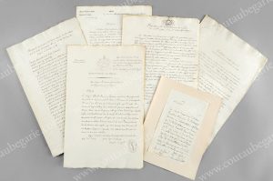 SANSON Charles-Henri (1739-1806). Ensemble de documents relatifs à la famille du bourreau de Paris qui décapita le roi Louis XVI, composé de 13 pages manuscrites retranscrites d'aprs les originaux de l'époque par le vicomte Alcide de...