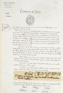 [LOUIS XVII - CONSEIL DU TEMPLE.] BEAUCHESNE Alcide-Hyacinthe Vicomte du Bois de (1804-1873). Copie manuscrite à en-tte de la commune de Paris, rédigée par Beauchesne, établissant le témoignage fait par Antoine Simon [(1736-1794), geôlier du...