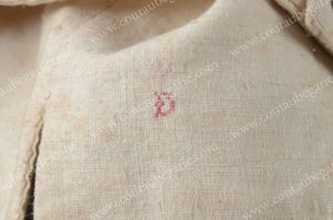 GILET DE LOUIS XVII PORTE LORS DE SA CAPTIVITE AU TEMPLE. LOUIS, duc de Normandie, dauphin de France, futur LOUIS XVII (1785-1795). Gilet en fine toile de coton blanc, à motifs alternés de raies ton sur ton, fermant sur le devant par deux rangées...