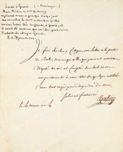 BACHER Citoyen, premier secrétaire interprte de l'ambassade de la République Franaise en Suisse. Pice autographe signée Bacher, le 4 nivôse de l'An IV, 1 page, in-folio. Pliure, légres traces d'humidité. Porte en haut du document une...
