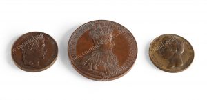 CHARLES X, roi de France. Ensemble de 3 médailles commémoratives en bronze: la premire, ornée du profil de Charles X d'une part, et des noms des membres du voyage de découvertes de la corvette l'Astrolabe d'autre part, signée Depaulis; la...