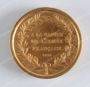 d'une guirlande de feuilles de laurier. Manque le texte d'intérieur. Travail Franais du XIXe sicle. Bon état. Diam.: 5 cm.