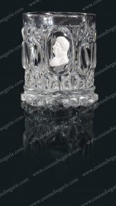 *LOUIS-PHILIPPE, roi des Franais. Verre en cristal, orné d'un cristallo-cérame représentant un portrait vu de profil du souverain, la tte tournée vers la gauche. Bon état général. Travail Franais. H.: 10, 5 cm L.: 9 cm.