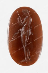 chasseresse. Légres usures du temps sur l'entourage. H.: 2, 5 cm L.: 2 cm.