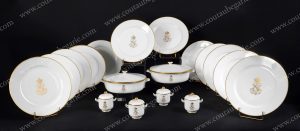 *NAPOLEON III, empereur des Franais. SERVICE DE L'EMPEREUR. Ensemble de 12 grandes assiettes plates, en porcelaine blanche, à décor central marqué du chiffre du souverain L.N. (Louis Napoléon) sous couronne impériale en lettres d'or, bordé...