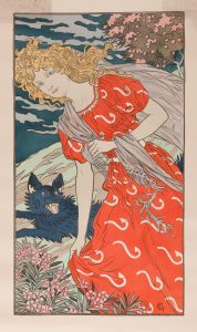 2 Panneaux décoratifs. Femmes en robe rouge et en robe jaune. Monogrammes E.G. dans la planche et timbre à sec. Un panneau est contresigné dans la marge inférieure.