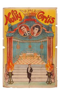 Nully CURTIS et sa japonaise, illusionnistes mondains. Affiche Louis Galice à Paris. NE. Marge effrangée. 120 x 80 cm.