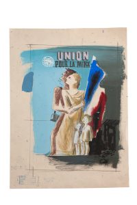 Maquette originale à la gouache, 42 x 29 cm. Non signée, dans le style des affiches politiques de Paul COLIN.