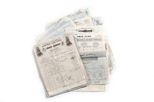 Important lot de factures datées principalement de la 1ère moitié du 19ème siècle, concernant des maison de commerce établies en majorité à Issoire (Puy-de-Dôme). Joint, un ensemble de mémoires de travaux, de reçus et de papiers financiers divers.