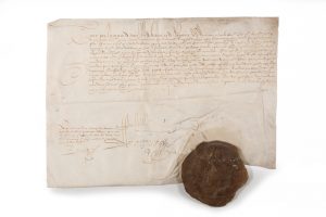 Roi de France. P.S. (secrétaire). Paris, 1er décembre 1604. Vélin oblong, grand cachet de cire (léger manque). Confirmation de la bulle papale nommant Claude de Bellièvre (+1612), frère du Grand Chancelier de France, archevêque de Lyon, par la résignation de de son frère Albert de Bellièvre, lettres lui permettant de prendre possession de son siège et y jouir de ses droits et privilèges.