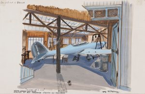 Réalisation : Comédie dramatique de Jean GRÉMILLON. Scénario et dialogues : Charles Spaak, Albert Valentin. Décors : Max Douy, d’après des maquettes de Trauner. Photographie : Roger Arrignon et Louis Page. Distribution : Madeleine Renaud, Charles Vanel, Jean Debucourt, Anne Vandène, Raymonde Vernay. - 6 Maquettes. Gouaches et aquarelles originales sur carton. Signées, dont 3 signées « Max Douy, d’après Alex. Trauner ». 32 x 48,5 à 44,5 x 81 cm. Joint, un petit dessin sur calque contrecollé. - 5 Photographies de Raymond Voinquel, représentant des scènes de film (2) et de tournage (3) 3 photos de tournage et 2 de scènes. Epreuves argentiques, 17,5 x 24 cm.  Joint, diverses reproduction photographies représentant…Environ 30 photographies de Raymond Voinquel, représentant des scènes du film et des décors. Tirages argentiques,13 x 18 cm à 16,5 x 22 cm.