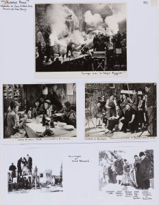 Réalisation : Tragi-comédie de Claude AUTANT-LARA. Scénario et dialogues : Jean Aurenche, Pierre Bost, Claude Autant-Lara. Photographie : André Bac. Distribution : Fernandel, Françoise Rosay, Carette, Grégoire Aslan, Marie-Claire Olivia, Jean-Roger Caussimon. - 11 Gouaches et fusains originaux, certains avec rehauts de couleurs, représentant des scènes et des décors dont un signé.  Formats divers, 32 x 46 cm à 50 x 64 cm. - 10 Pastels originaux sur papier noir ou bleu foncé, représentant des scènes et décors. Joint, un dessin au crayon noir (taché). Signés. 34 x 37,5 à 49 x 66 cm. - 19 Lavis d’encre de Chine avec quelques rehauts de craie blanche, représentant des scènes du film. Non signés. Et, 3 dessins gouache et traits d’encre de Chine. - Environ 60 photographies, représentant des scènes, des montages de décors, des tournages et des repérages dont une photographie de G. Thonnart (reproduite). Formats divers.