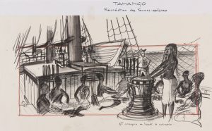 Réalisation : Film de John Berry. Scénario et dialogues : John Berry. Photographie : Jacques Natteau. Distribution : Curd Jürgens, Dorothy Dandridge, Jean Servais. - 20 Dessins ou esquisses au crayon, représentant des scènes du film. Des planches comportent  plusieurs dessins. 23,5 x 33 cm et 66,5 x 101,5 cm. en majorité non signées. - Ensemble de photographies de montage des décors et de scènes du film. - Ensemble de plans imprimés avec quelques plans au crayon sur calque.