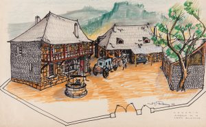 Réalisation : Jean-Paul le CHANOIS. Scénario : René Havard et Claude Desailly, d’après le roman d’Arthur Bernède. Dialogues : Jean Cocteau. Photographie : Marc Fossard. Décors : Pierre Guffroy. Distribution : Georges Rivière, Silvia Monfort, Georges Wilson. - 5 Dessins au feutre de couleur, 28 x 65 cm à 50 x 77 cm.