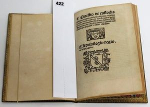 1 volume petit in-8° en plein maroquin vert foncé, dos orné, titre doré, triple filet doré en encadrement sur les plats, tranches dorées, dentelle dorée sur les contreplats. Jolie reliure XIXème non signée. Légers frottements sur le haut des mors. Exemplaire en caractères gothiques XIX ff.- 1 f.n.c. Complet du titre et de la marque de l’imprimeur in-fine. Cet ouvrage est dû à Nicolas de Bohier,, né à Montpellier en 1469 et décédé en 1539. Bel et rare exemplaire de cette édition imprimée à Lyon en 1512