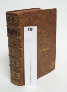 1 volume in-4° relié en plein veau havane, reliure d'époque, dos à nerfs orné de fleurons dorés, pièce de titre en maroquin rouge, tranches rouges. Quelques épidermures sur les plats, frottements d'usage, petit manque de cuir au coin inférieur du premier plat. Ouvrage collationné et complet : 1fb-frontispice-titre-12ffnc-866 p.p-index-1fb. Exemplaire correct malgré une mouillure sur l'ensemble du volume.