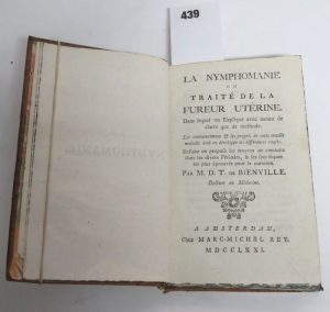 Bienville (Jean Baptiste Louis de Thesacq, dit J.D.T.de) La Nymphomanie ou traité de la fureur utérine. Chez Marc-Michel Rey, à Amsterdam, 1771.