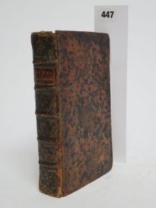1 volume in-12, relié en plein veau porphyre, dos à nerfs orné, pièce de titre en basane marron. Reliure défraîchie. Front. – 8ff.nc. – 512pp. 1 planche dépliante. Mouillures marginales en fin d’ouvrage ainsi que sur la planche ; rousseurs éparses.