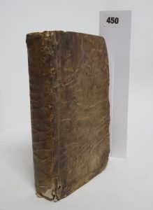 Deux parties en 1 volume in-12, reliure en plein vélin souple d’époque. Celui-ci a souffert; la peau est racornie, manque de cuir en pied, 2 coins abimés avec manque. 1 ère partie : 179 pp.- 3pp.n.c.- 1 f.b. Mouillure centrale sur les 20 premiers ff., 1 cahier en partie détaché. Seconde partie : 2 ff.n.c. – 208pp. impression sur papier bleuté. Nombreux croquis dans le texte, erreur de pagination : feuillet 150/151 absent sans manque de texte. Charmant exemplaire de travail.