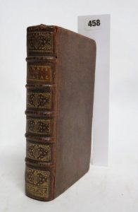1 volume in-12, reliure d’époque en plein veau, dos à nerfs orné, pièce de titre en veau clair. Petit accroc à la coiffe ; petite fente de 3 cm en pied sur les deux mors. Reliure propre et solide, corps d’ouvrage satisfaisant avec quelques rares parenthèses faites au crayon en marge. 2 ff.b .-titre- 1f.n.c.-48 pp.- 28 ff.n.c.242 pp.- 7 ff .n.c.- 119 pp ;-1 f.b.