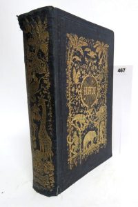 1 volume in-8° en cartonnage éditeur romantique, pleine percaline bleue avec décor doré représentant des animaux sur les plats et le dos, toutes tranches dorées. Dos un peu passé; les ors du premier plat sont bien vifs. Décoloration de la percaline par endroits, coins émoussés, petits manques de toile le long des mors, ainsi que 2 fentes sur ceux-ci. Collationné et contient 98 planches couleur sur les 100 annoncées; rousseurs éparses.|