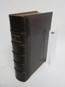 1 volume in-4° reliure d’époque en plein maroquin chocolat à l’imitation des reliures du XVIème. Plats biseautés avec filets à froid en encadrement, dos à nerfs avec titre doré, toutes tranches dorées. Roulette dorée en encadrement sur les contreplats, gardes moirées fuchsia. Petits frottements d’usage. 14 pp.- 399 pp. - 8 pp. tous les feuillets, montés sur onglets, sont imprimés en chromolithographie couleurs. Magnifique travail de Curmer. Bel exemplaire dans une élégante et sobre reliure non signée.