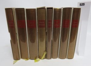 Pléiade 8 volumes in-12, reliure éditeur avec jaquettes rhodoïd et étuis de carton gris, ou blanc. Tous complets. Aragon, Dostoïevski, Lewis Carroll, Sartre, Saint-Exupéry, Pascal, Prévert, Rousseau.