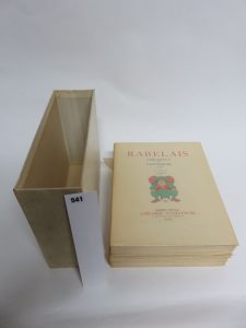 1 volume in-4° oblong relié en pleine toile rouge décorée d’une reproduction d’un dessin en noir, titre en noir au dos passablement insolé ; étui en carton recouvert de papier rouge, décoré de reproductions de dessins de Picasso. Frottement sur l’étui. Ouvrage en langue allemande, collationné et complet des reproductions de dessins ainsi que des 4 lithographies de Picasso. Quelques rousseurs sur le côté gauche de la première lithographie. Bon exemplaire.