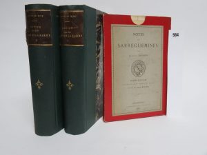 2 volumes in-8° reliés en demi-percaline verte à coins, dos lisse avec pièce de titre en chagrin marron foncé. Léger décollement des pièces de titres. Couverture conservée. Tome 1 IX pp. 758 pp. Tome 2 V pp. 776 pp. cartes et photos illustrent l’ouvrage. In-fine du tome 2 est reliée une plaquette de 19 pages sur Nicolas Box. On joint : Notes sur Sarreguemines par Auguste Thomire, un étui rouge avec titre collé sur le plat, contenant sept plans dépliants dessinés par Emile Muller. Imprimés à Strasbourg en 1887.