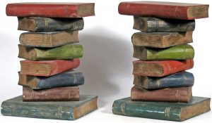 BOIS peint en rouge, vert et jaune dans des tons passés, H. 50 x larg. 33 x Long. 33 cm.