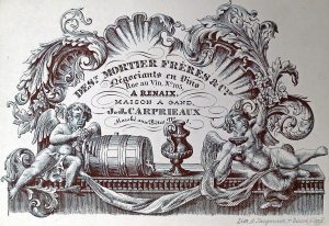 Grandeurs variées dont 2 de 26,1 x 34,1 cm, la majorité en français, collées en plein sauf de rares volantes. Dans un album pet. in-f° oblong ad hoc : demi-veau vert à coins, plats de papier marbré, dos lisse (us. et frotté, mors sup. part. fendu, manques de papier, coins émoussés). Publicités : métiers (imprimeurs Jacqmain, de Malander-Rynvaen et Bevernaege frères, coiffeur Théodore Claus, carrossier Liévin Vandercruyssen, mercerie "Les soeurs d'Hanys" et fabrique d'ornements d'églises De Landtsheer-Duez à Gand, poissonnerie "À la morue de Hollande" à Bruges, Tissanderie Loix-Van Den Driessche à Renaix...), hôtels (Paon d'or à Alost, Aigle d'or à Courtrai, Singe d'or à Tournai...), cartes de visite (professeur de boxe James Bamford...).-- Invitations : remise de prix d'écoles ou pensionnats (Soudan-Léger à Gand, Institution H. Bocquet à Anderlecht, Collège Saint-Louis de Gonzague à Renaix...), bals ou concerts (bal champêtre à Audenaerde, Société d'Orphée à Grammont...).-- Vues (Ostende, église Saint-Martin à Ypres, ancienne Tour des Halles à Bruges...).-- Faire-part de mariage, menus, etc.