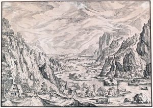 [ DE BRUYN, Nicolaes (1571-1652)].- Grand paysage alpestre avec vue sur une vallée [d'après Hans BOL (1534-1593)].