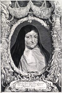 [ Haarlem], P[ieter] Soutman, [ 1621 ou peu après]. Eau-forte, cuv. 41,7 x 27,8 cm + très grandes marges, papier vergé non filigrané, fixée par les coins sup. sous passe-partout. Portrait en médaillon de l'Infante (1566-1633), fille de Philippe II et gouvernante des Pays-Bas espagnols. Elle est figurée ici habillée en clarisse, ordre qu'elle rejoignait après la mort de son époux Albert d'Autriche en 1621. Bel encadrement gravé orné de gerbes fleuries et de festons. Deuxième état (sur 3).
