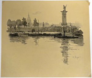 BÉJOT, Eugène (Paris 1867-1931).- Vue sur le pont Alexandre III et les Invalides.